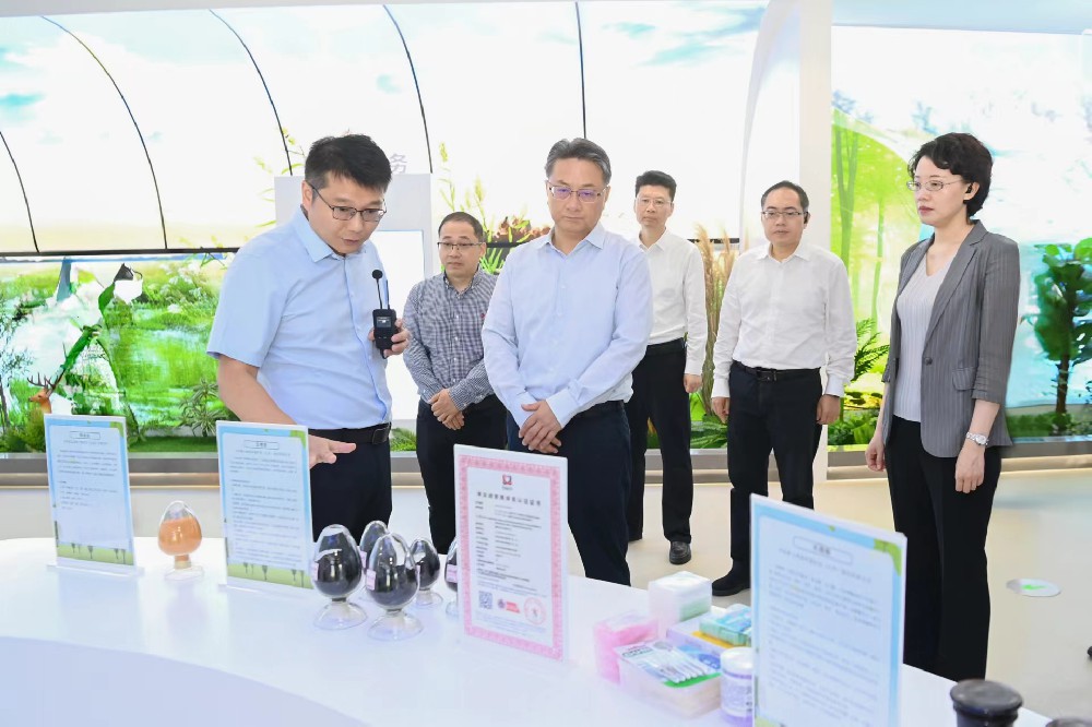 2024年7月22日,盐城市市委书记周斌在亭湖区区委书记盛艳、区长田海波的陪同下观摩本公司生物炭-微生物菌剂产品样本。